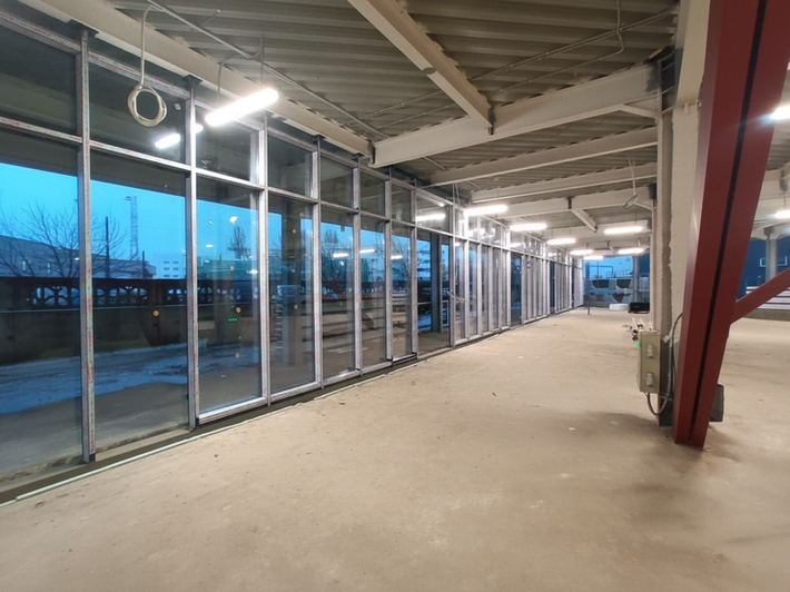 Structura clădirii se apropie de finalizare, iar lucrările de montare a fațadei sunt în curs de execuție.